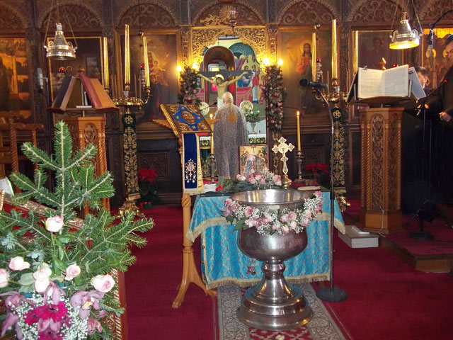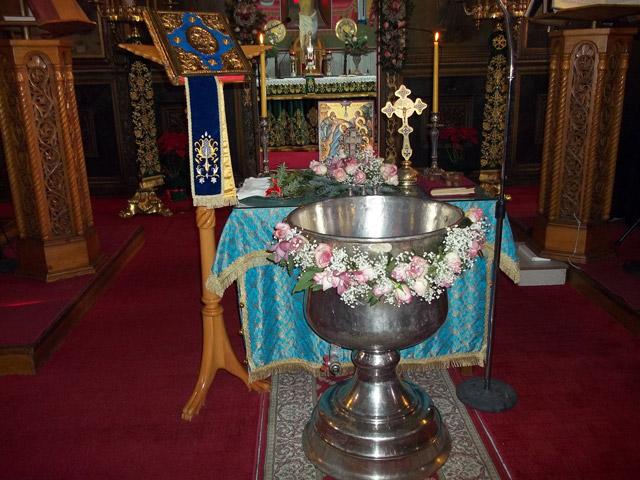 Στον Μητροπολιτικό Ναό της πόλης, Παναγία Φανερωμένη, παρουσία του Δημάρχου Τυρνάβου Ιωάννη Κόκουρα, τελέστει ο αγιασμός των υδάτων από τον Αρχιμανδρίτη Τιμόθεο και τον πατέρα Αθανάσιο, παρουσία αρκετών πιστών εντός του ναού.