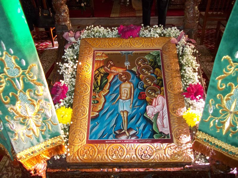 Επίσης στον Άγιο Γεώργιο με τις ιδιαίτερες συνθήκες λόγω των προβλημάτων από τον σεισμό, ο Αρχιμανδρίτης τέλεσε τα θεοφάνεια.