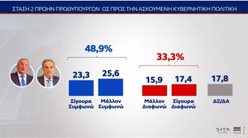 Συγκεκριμένα, στο γενικό κοινό το 48,9% συμφωνεί με την κριτική που ασκούν οι δύο πρώην πρωθυπουργοί στην κυβέρνηση.