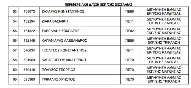 Τα ονόματα των νέων Διευθυντών Πρωτοβάθμιας και Δευτεροβάθμιας Εκπαίδευσης στη Θεσσαλία