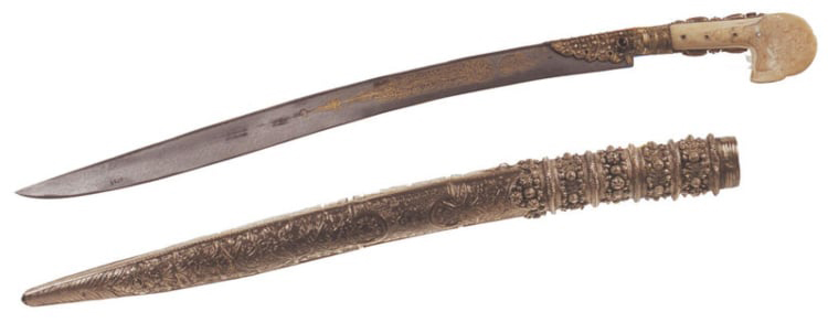 Το καμπυλωτό «γιαταγάνι» συχνά αποτελούσε όπλο τουρκικής καταγωγής, και ήταν συχνά λάφυρο αγώνων. Επρόκειτο για ένα κοντό μαχαίρι ή κοντό σπαθί το οποίο δεν διέθετε προστατευτικό για το χέρι στο σταυροδρόμι της λεπίδας και της λαβής. Κάποια λίγα ελληνικά γιαταγάνια που υπήρχαν είχαν χρυσές επιγραφές στις οποίες συνήθως υπήρχε η αρχή του 34ου ψαλμού του Δαβίδ «Κύριε δίκασον τους αδικούντας με, και πολέμησον τους πολεμούντας με». Οι αγωνιστές της Ελληνικής Επανάστασης του 1821 το τοποθετούσαν στο σελάχι. Έχουν διασωθεί πολλά γιαταγάνια σε σχέση με άλλα όπλα.