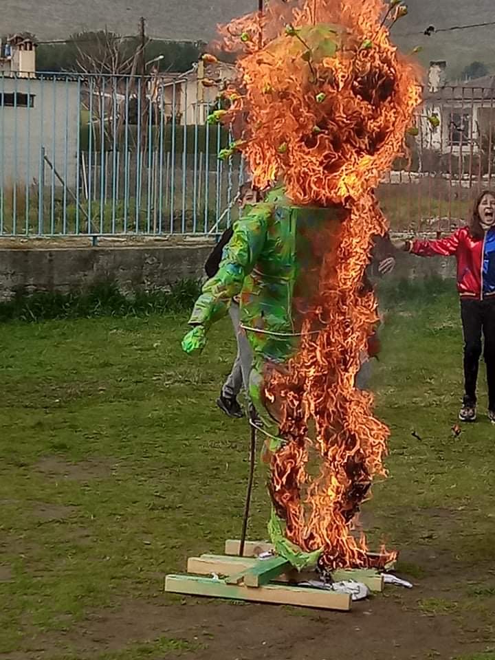 Μετά τη γιορτή του σχολείου με χορούς και τραγούδια τον παρέδωσαν στις φλόγες τηρώντας το παραδοσιακό έθιμο.