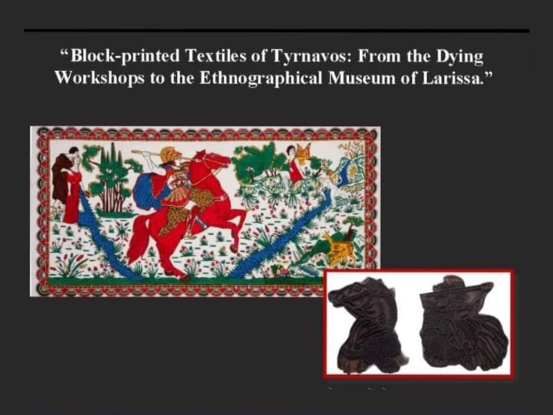 Η περίπτωση των τυποβαφείων του Τυρνάβου αναλύθηκε από την διευθύντρια του Μουσείου κα Φανή Καλοκαιρινού μέσα από παρουσίαση με θέμα: «Block – printed Textiles of Tyrnavos:From the dying workshops to the Ethnographical Museum of Larissa/ Τα σταμπωτά του Τυρνάβου: Από τα παραδοσιακά τυποβαφεία στο Λαογραφικό Ιστορικό Μουσείο Λάρισας».