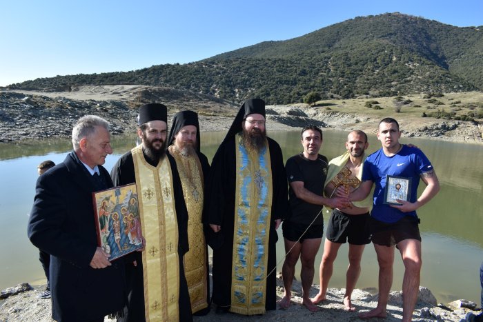 Ο Καθηγούμενος με τη σειρά του συγχάρηκε και τους τρεις νέους οι οποίοι έπεσαν στα ύδατα και ευχήθηκε σ᾽ αυτούς αλλά και σε όλους τους παρευρισκόμενους την ευλογία του Θεού.
