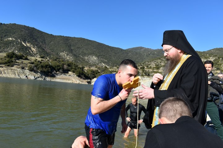 Τον Τίμιο Σταυρό ανέσυρε από τα ύδατα ο Δάσιος Χρυσοβαλάντης, προσκυνητής της Μονής από τα παιδικά του χρόνια, και ευχήθηκε σε όλους υγεία και δύναμη.