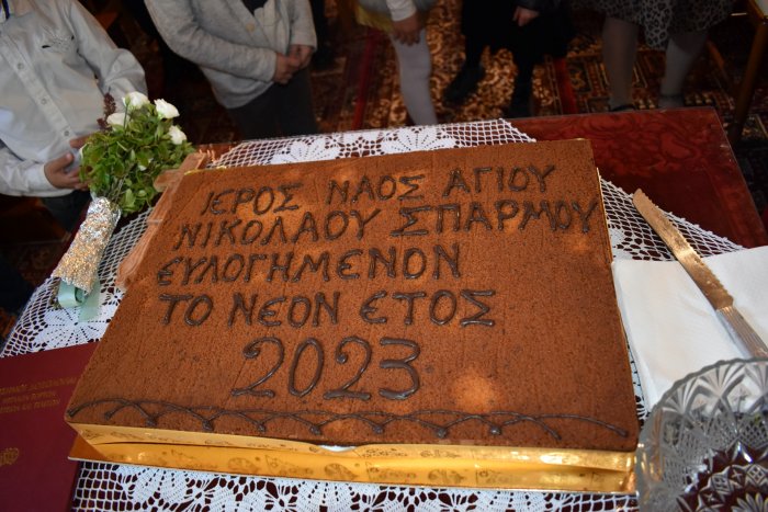Στη συνέχεια όλοι μαζί μετέβησαν στο παρακείμενο παρεκκλήσιο του Αγίου Νικολάου, όπου και κόπηκε η βασιλόπιτα των κατοίκων του Σπαρμού.
