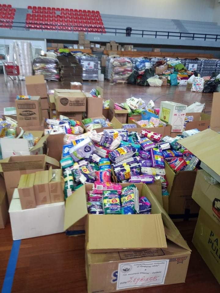 Το κλειστό Γυμναστήριο της πόλης έχει μετατραπέι σε μια απολύτως οργανωμένη αποθήκη και όλα εκεί λειτουργούν με θαυμαστή οργάνωση και ακρίβεια. Δεν είναι τυχαίο πως όλοι δηλώνουν απολύτως ικανοποιημένοι από τη λειτουργία της γραμμής βοήθειας και την προσπάθεια.