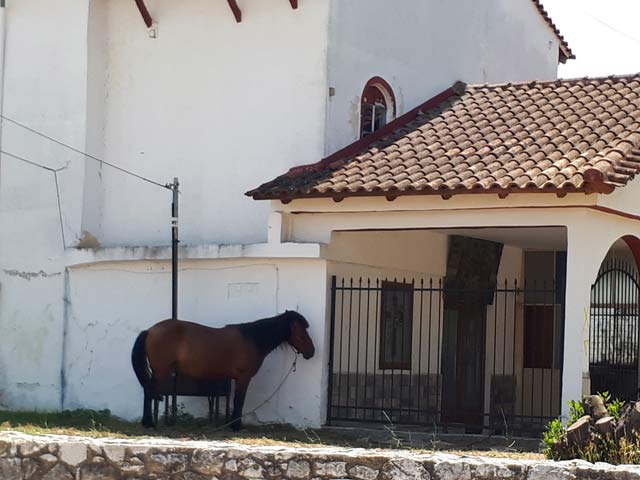 Άλογα στον προαύλιο χώρο της Αγίας Τριάδας Τυρνάβου – Όμορφο θέαμα αλλά οι ακαθαρσίες τους;