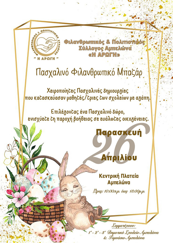 ΦΠΣΑ ”Η Αρωγή”: Πασχαλινό Φιλανθρωπικό Bazar