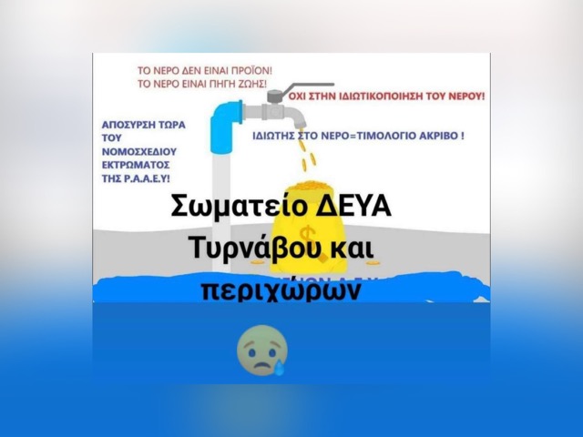 Σωματείο ΔΕΥΑ Τυρνάβου –Ελασσόνας και περιχώρων: Κάλεσμα στην ΑΠΕΡΓΙΑ στις 20 Μαρτίου 2023