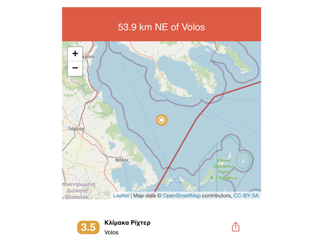 Σεισμός 3,5 ρίχτερ στον Βόλο
