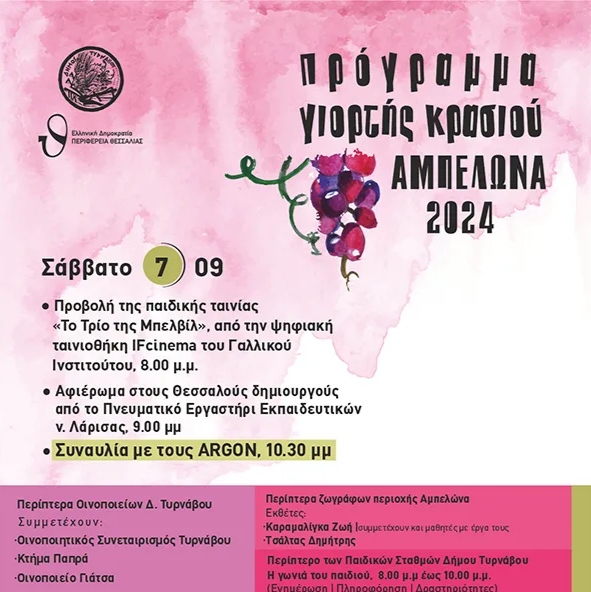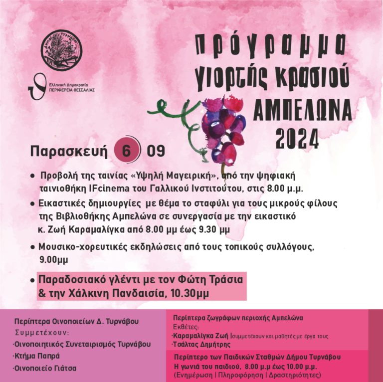 Δήμος Τυρνάβου: Ανακοινώθηκε το επίσημο και ολοκληρωμένο πρόγραμμα της Γιορτής Κρασιού Αμπελώνα