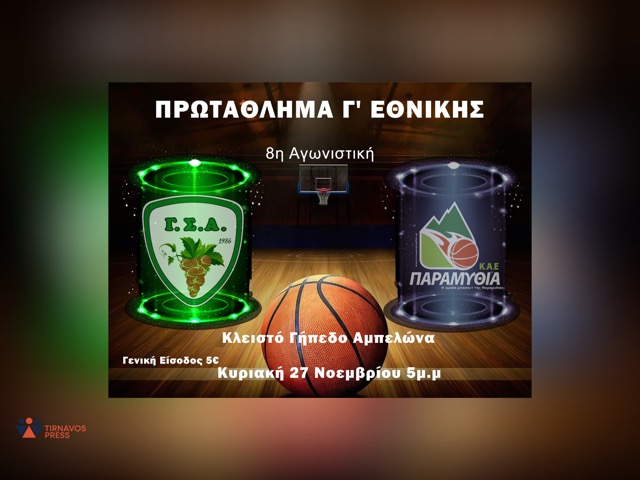 Έκτακτο: Στο Κλειστό Τυρνάβου ο σημερινός αγώνας μπάσκετ του Γ.Σ. ΑΜΠΕΛΩΝΑ