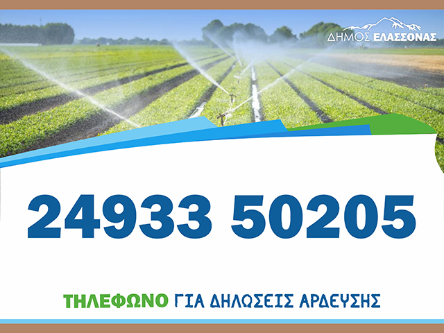 Δήμος Ελασσόνας: «Τελευταία προθεσμία για την υποβολή δηλώσεων άρδευσης»