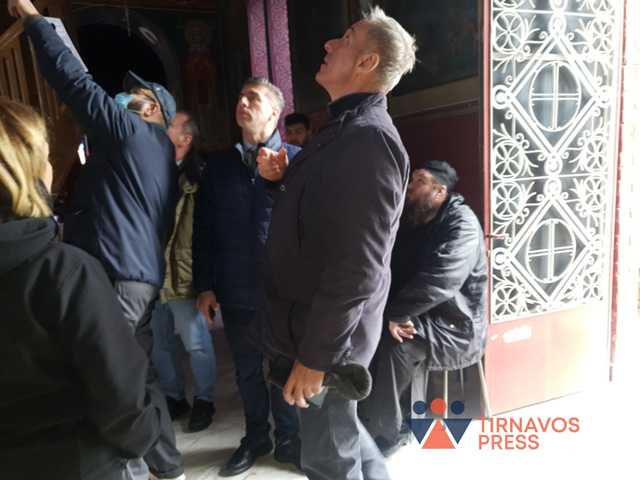 Στις πληγείσες εκκλησίες ο Δήμαρχος Τυρνάβου με το κλιμάκιο του Υπουργείου Υποδομών