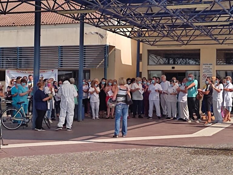 Υγειονομικοί υπάλληλοι οργάνωσαν σήμερα διαματυρία ενάντια στον εμβολιασμό τους έξω από το Πανεπιστημιακό νοσοκομείο Λάρισας
