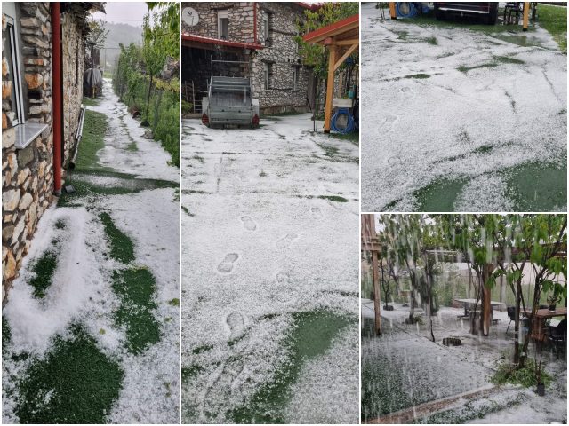 Έντονη χαλαζόπτωση έπληξε την Καρυά Ολύμπου (φωτο-βίντεο)