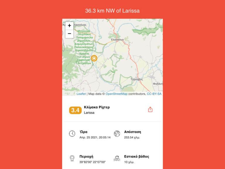 Ασθενής σεισμική δόνηση 3.4 βαθμών της κλίμακας ρίχτερ στις 20:05 στην Ελασσόνα