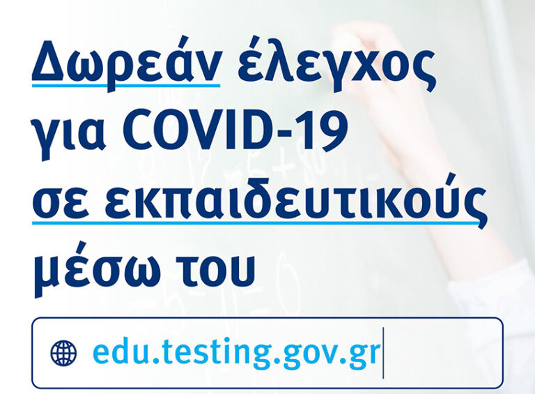 Σε λειτουργία η πλατφόρμα δωρεάν ελέγχου COVID-19 για εκπαιδευτικούς