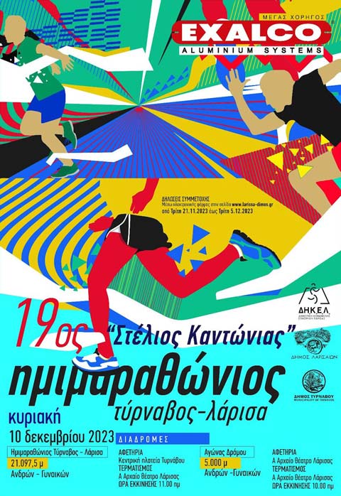 19ος Ημιμαραθώνιος Δρόμος Τύρναβος – Λάρισα “ΣΤΕΛΙΟΣ ΚΑΝΤΩΝΙΑΣ” και αγώνας δρόμου 5 χλμ. την Κυριακή 10 Δεκεμβρίου