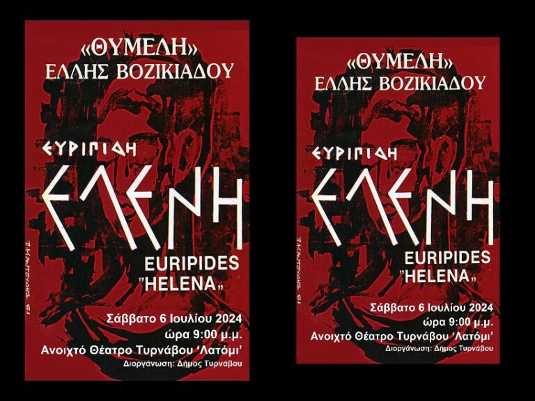 Η θεατρική παράσταση «Ελένη» του Ευριπίδη παρουσιάζεται στον Τύρναβο