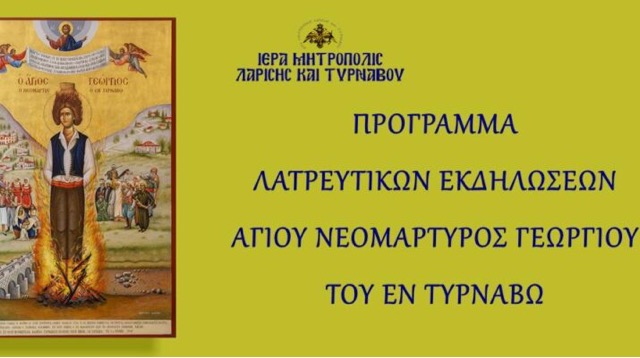 Πρόγραμμα Λατρευτικών Εκδηλώσεων Προς Τιμή Του Νέου Αγίου Νεομάρτυρος Γεωργίου Του Εν Τυρνάβω