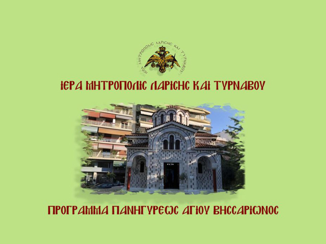 Πρόγραμμα εορτής του Πολιούχου της πόλεως Λαρίσης Αγίου Αχιλλίου του Θαυματουργού