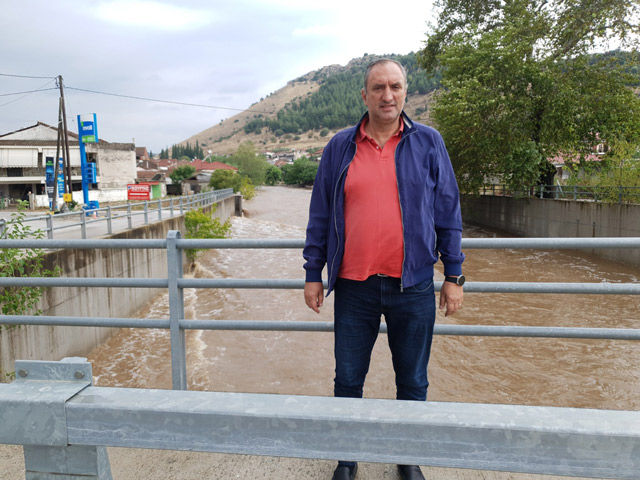 Ο δήμαρχος Τεμπών στα πλημμυρισμένα χωράφια της Καλλιπεύκης