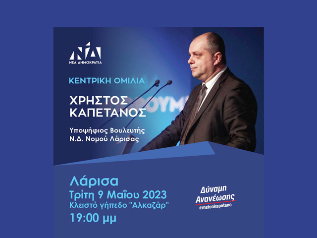 Την Τρίτη 9 Μαΐου η κεντρική προεκλογική ομιλία του Χρήστου Καπετάνου