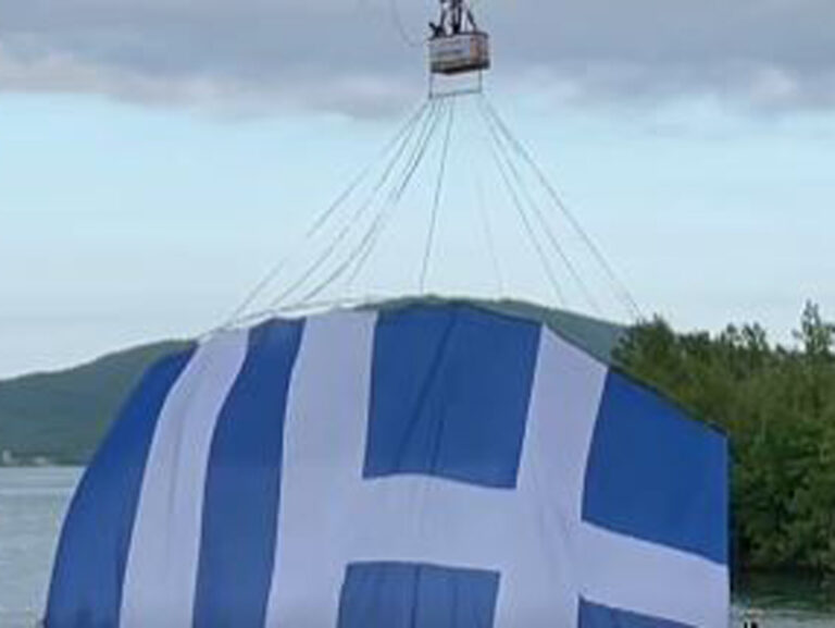 Η μεγαλύτερη ελληνική σημαία στον κόσμο υψώθηκε στη λίμνη Πλαστήρα (Βίντεο)