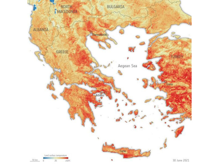 Στους 50 βαθμούς έφτασε η πραγματική θερμοκρασία την Τετάρτη σύμφωνα με την Ευρωπαϊκή Διαστημική Υπηρεσία