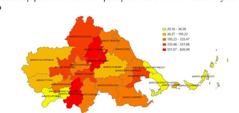 Στο κόκκινο και πάλι ο Δήμος Τυρνάβου και Λαρίσης σύμφωνα με την νέα Έκθεση επιδημιολογικής επιτήρησης λοίμωξης από το νέο κορωνοϊό (COVID-19)