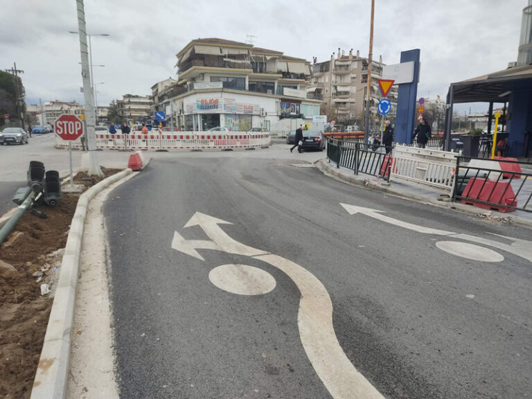 Με την κατασκευή κυκλικού κόμβου συνεχίζονται οι εργασίες στη συμβολή των οδών Βόλου-Ηρ.Πολυτεχνείου-23ης Οκτωβρίου