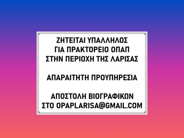 Ζητείτε υπάλληλος σε πρακτορείο ΟΠΑΠ στην περιοχή της Λάρισας