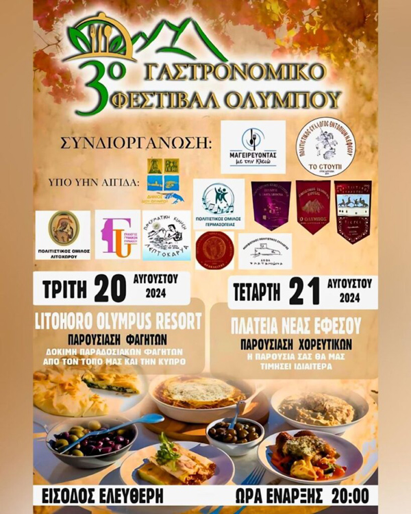 3ο Γαστρονομικό Φεστιβάλ Ολύμπου το διήμερο 20 και 21 Αυγούστου