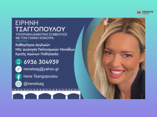 Κοντογιάννη Τζιόλα Αναστασία: Ζητώ την ψήφο σας με αίσθημα ευθύνης για να χτίσουμε το αύριο του Τυρνάβου