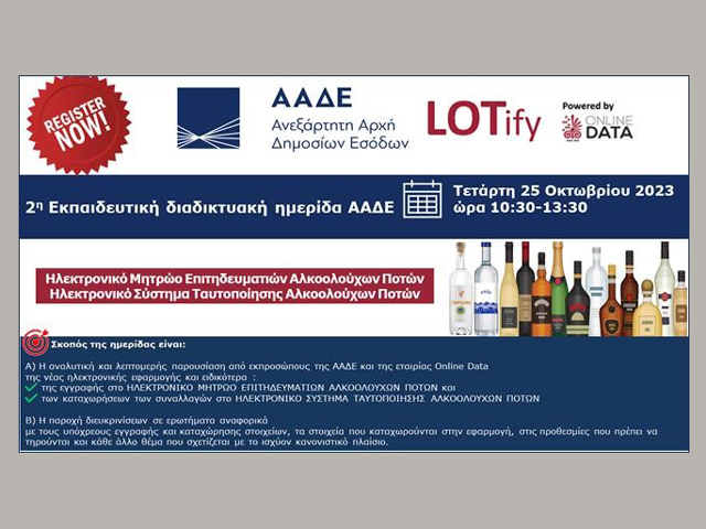 Διαδικτυακή Ημερίδα για το Ηλεκτρονικό Σύστημα Ταυτοποίησης Αλκοολούχων ποτών
