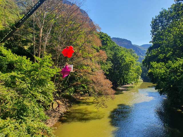 Η πιανίστρια της Ακρόπολης Έλενα Ξυδιά αιωρείται πάνω από τον Πηνειό στην Αγία Παρασκευή Τεμπών