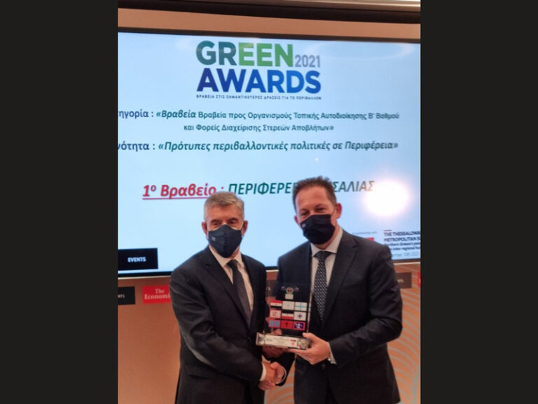 Βραβείο Green Award 2021 για το Περιβάλλον στην Περιφέρεια Θεσσαλίας από το The Economist και το powergame.gr