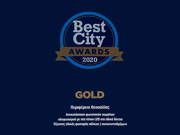 Διπλή βράβευση για την Περιφέρεια Θεσσαλίας στα Best City Awards 2020 για τα «πράσινα» έργα του οδοφωτισμού με LED και των ενεργειακών αναβαθμίσεων