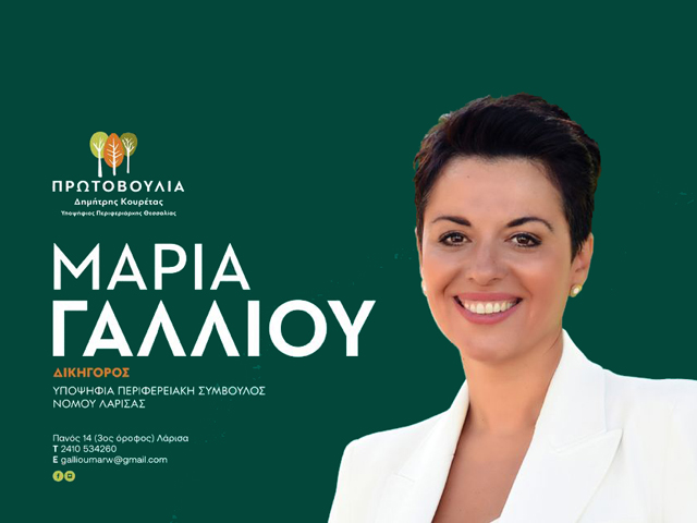 Μαρία Γαλλιού: Συ στρατεύομαι στο πλευρό του Δημήτρη Κουρέτα Υποψηφίου Περιφερειάρχη Θεσσαλίας