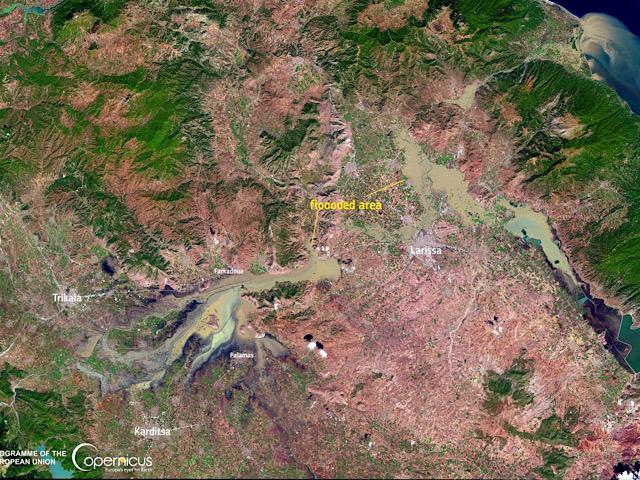 Δορυφορική εικόνα από την πλημμυρισμένη Λάρισα