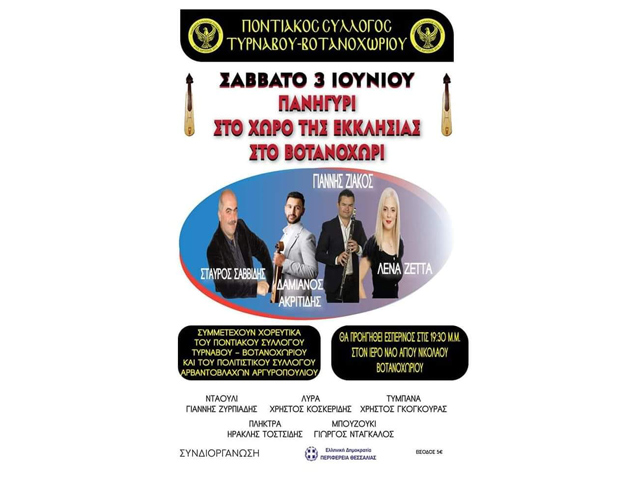Αύριο Σάββατο 3 Ιουνίου το μεγάλο πανηγύρι των Ποντίων στο Βοτανοχώρι