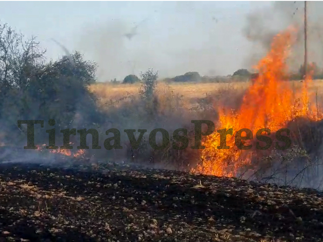 Φωτιά σε κτήμα στο ύψος του ALFA WOOD με κατεύθυνση προς Λάρισα στα αριστερά