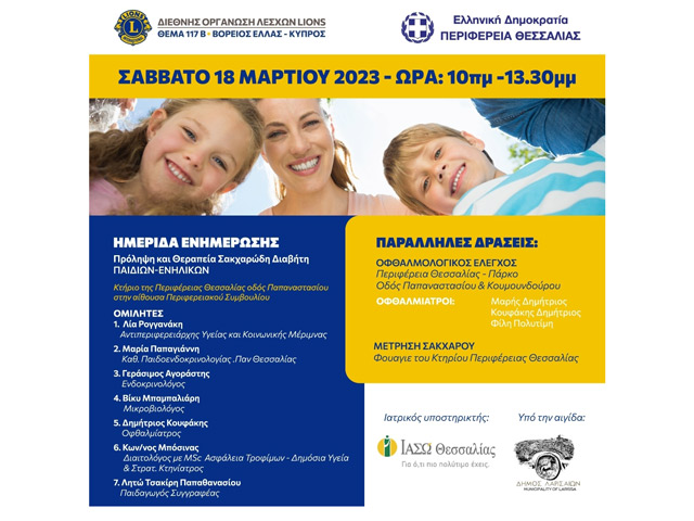 Ενημέρωση για τον σακχαρώδη διαβήτη και δωρεάν οφθαλμιατρικοί έλεγχοι και μετρήσεις σακχάρου το Σάββατο στην Περιφέρεια Θεσσαλίας