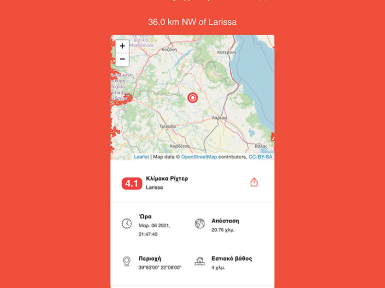 Ισχυρός μετασεισμός πριν λίγο με επίκεντρο κοντά στον Τύρναβο