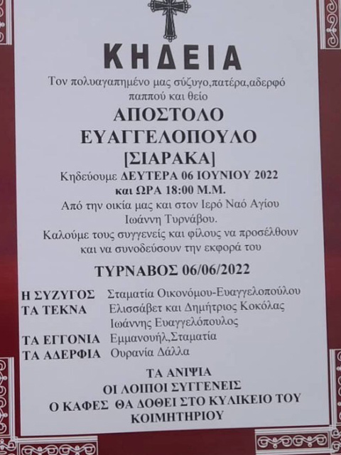 Κλειστό λόγω πένθους θα παραμείνει το Σουβλακερί Δευτέρα 6 και Τρίτη 7 Ιουνίου