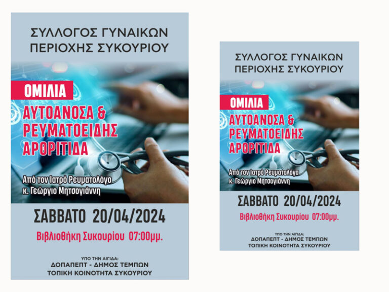 Ο Γυναικών Σύλλογος Συκουρίου διοργανώνει ημερίδα με θέμα ”Αυτοάνοσα Νοσήματα και Ρευματοειδής Αρθρίτιδα”