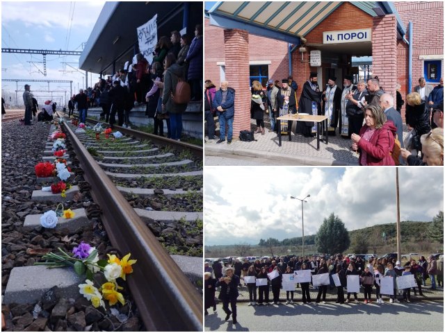 Τρισάγιο είς μνήμη των νεκρών στα Τέμπη στο σταθμό των νέων πόρων