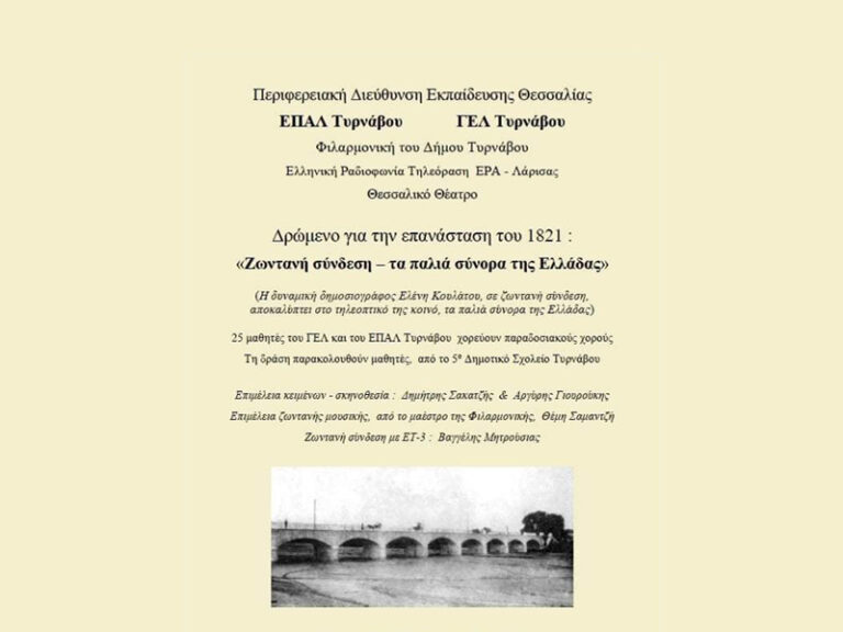 Ζωντανή σύνδεση:« τα παλιά σύνορα της Ελλάδας», παρέμβαση από το ΕΠΑΛ και το ΓΕΛ Τυρνάβου, για το1821